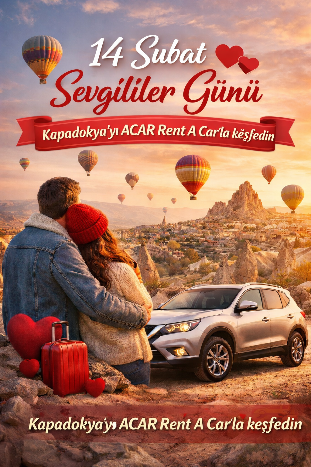 Sevgililer Günü’nde kalabalık tur programlarına bağlı kalmadan, kendi rotanızı çizmek istiyorsanız oto kiralama büyük avantaj sağlar. ACAR Rent A Car, Kapadokya genelinde sunduğu güvenilir araç kiralama hizmeti ile romantik yolculuğunuzu konforla buluşturur.